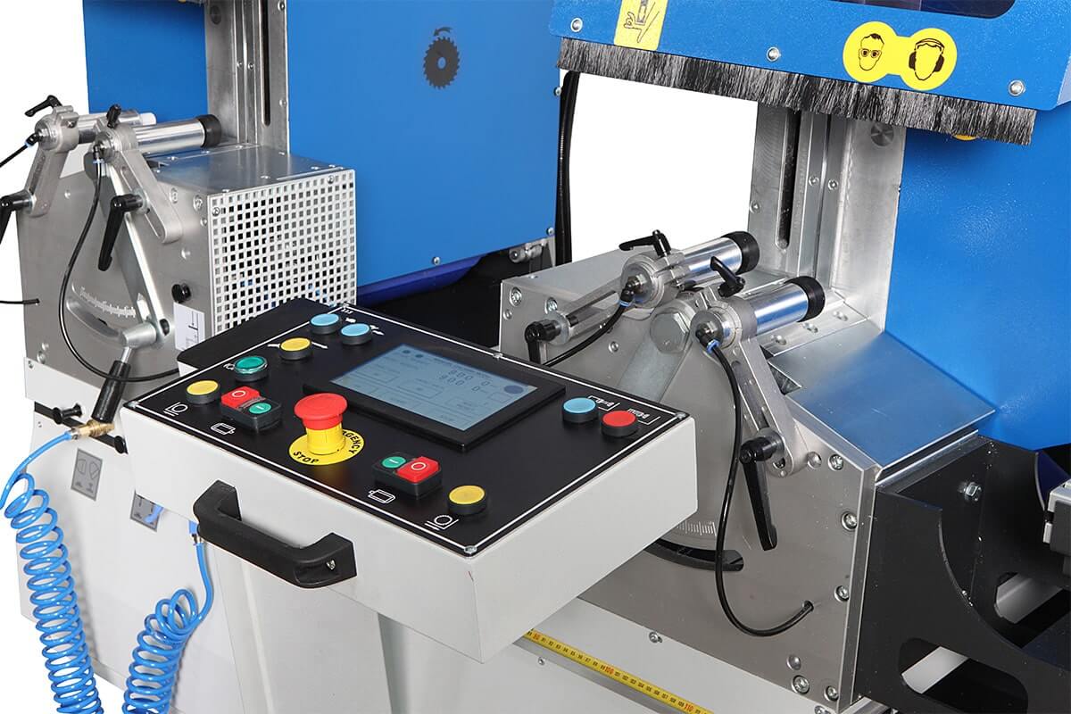 - Cutting length size and angle degree are entered from LCD-display on control panel